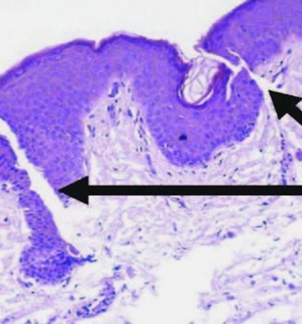 - Dies geschieht in der dermal-epidermalen Junktionszone (DEJ).