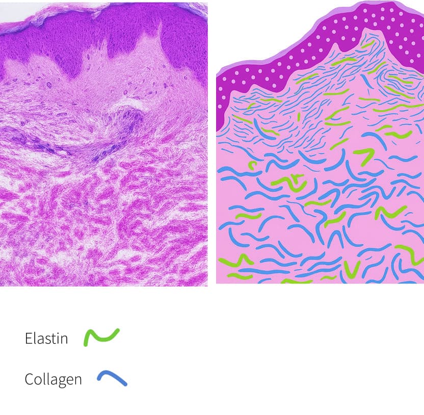 - Erhöhung der epidermalen Dicke und des Tropoelastingehalts
